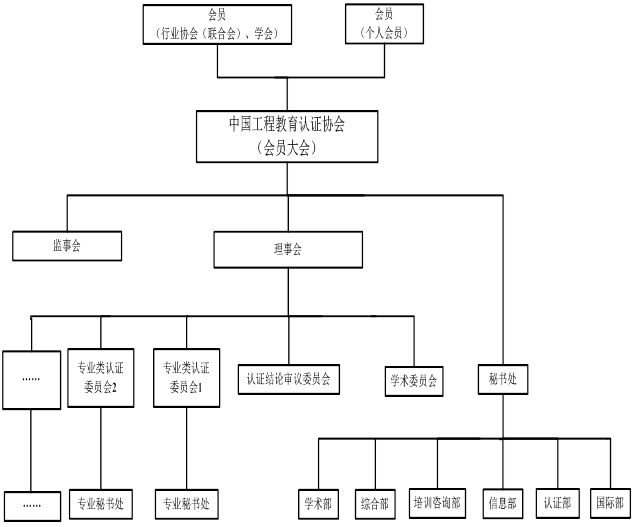 中国工程教育认证工作是在中国工程教育认证协会(以下简称认证协会)的领导下组织开展的。中国工程教育认证协会是由热心中国工程教育的有关团体和个人自愿结成的全国性、非营利的会员制社会团体组织。
