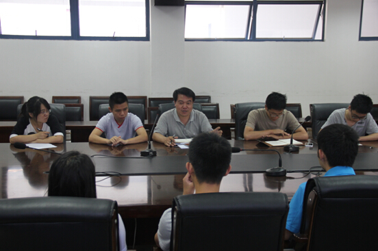 2015届本科毕业生座谈会。学院李兴鳌书记、于景宝副书记、2011级辅导员乔松岭、2015届毕业生各班代表参加本次座谈会。