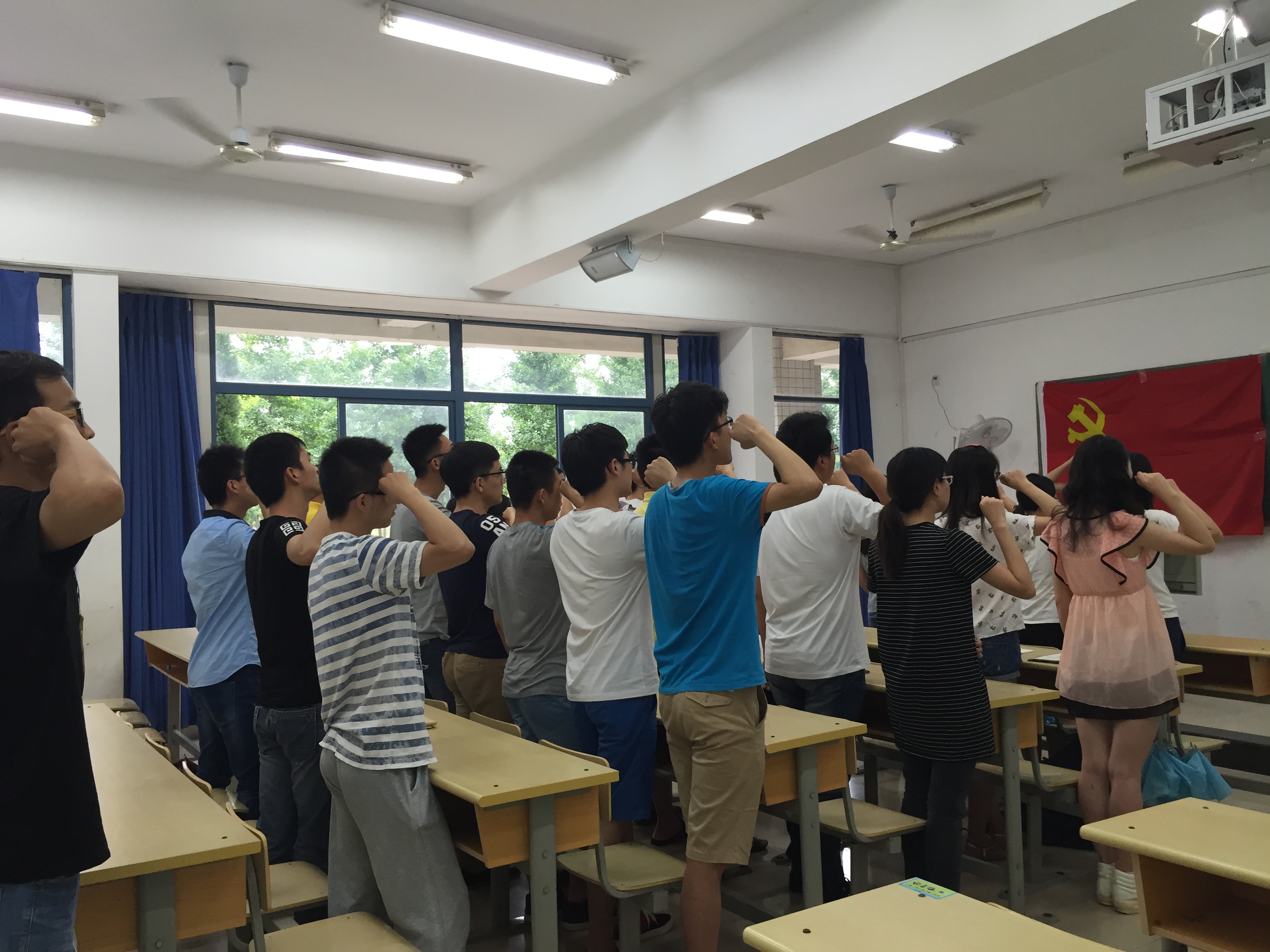 全体毕业生党员面对党旗重温入党誓词,再次感受了这一庄严的时刻,更加明确了党员的责任与义务。