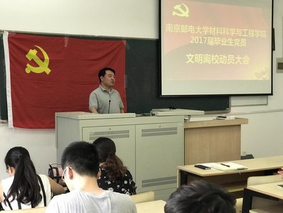 6月10日,91网站 在教3-107召开文明离校动员大会,院党委副书记兼副院长于景宝、毕业班辅导员李娜以及全体毕业生党员参加会议。