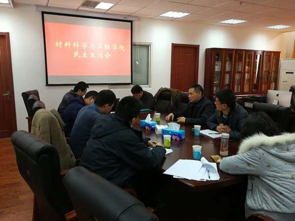 2018年1月11日中午,91网站 在材料学科楼313召开民主生活会,蒋国平副校长莅临指导,材料学院副院长陈润锋、副书记于景宝参加会议,院长范曲立、副院长赵强、沈清明、院办主任刘丹列席民主生活会。会议由马延文书记主持。