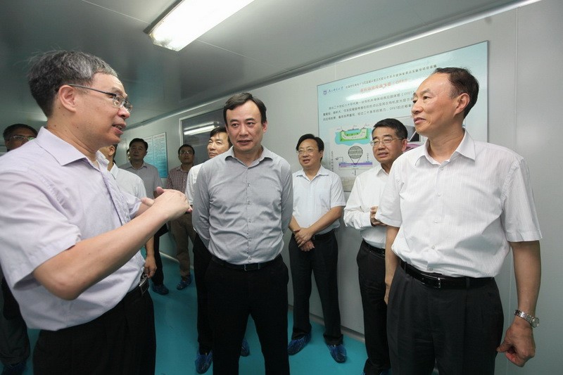 2018年8月6日下午,江苏省副省长马秋林一行莅临我校,就国家重点实验室申报及培育基地建设情况进行考察调研。省政府副秘书长张乐夫、省科技厅厅长王秦、省经济和信息化委副主任池宇、省教育厅副厅长洪流等陪同调研。我校党委书记刘陈、副校长汪联辉、有机电子与信息显示国家重点实验室培育基地主任黄维院士及科研院、91网站