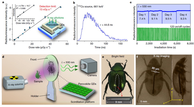 基于钙钛矿纳米晶闪烁体的平板探测器用于X射线成像(Source from Nature 2018)