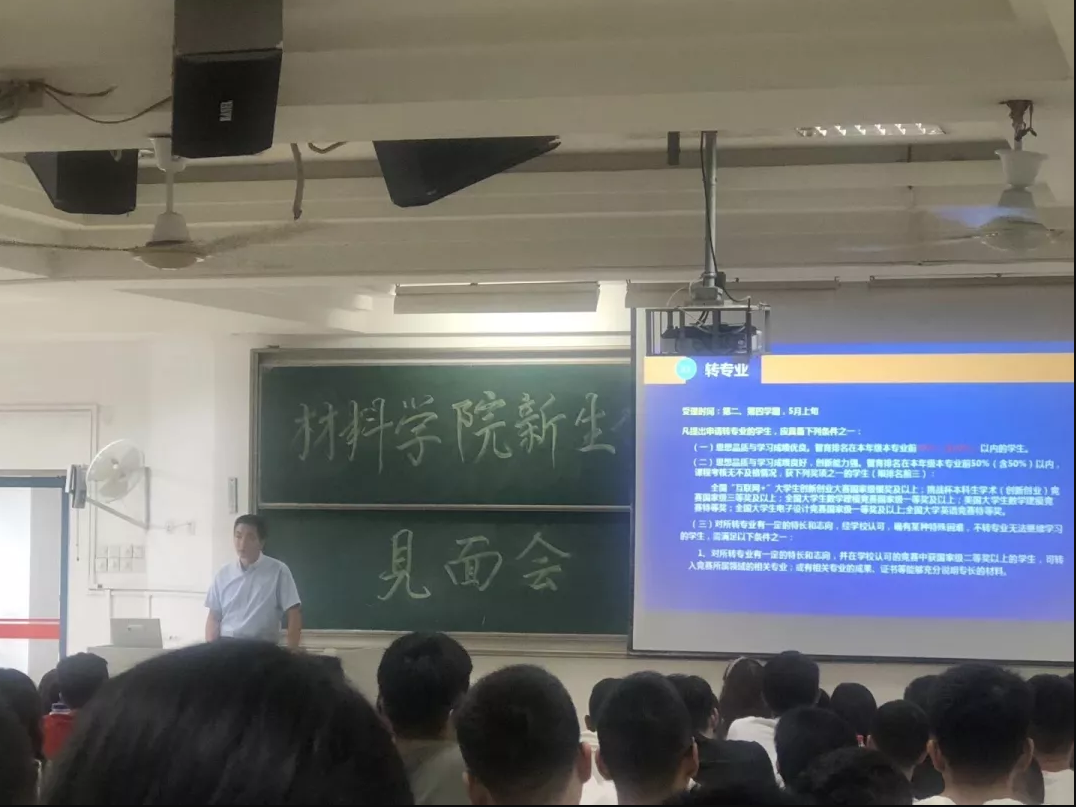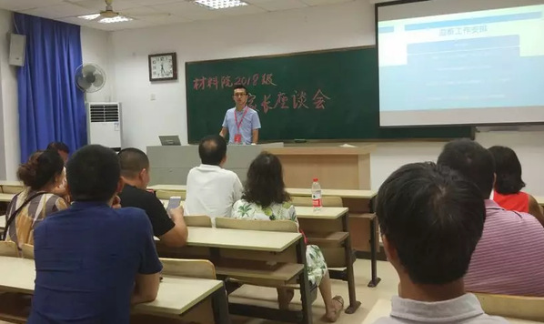 别出心裁的迎新标语,浓厚热烈的迎新氛围,礼貌热情的迎新志愿者构成了校园一条条靓丽的风景线。学院饱含的热情不仅仅倾注在莘莘学子身上,同时也倾注给了每位远道而来的家长。我院在9月4日晚6点半和9月5日下午3点半分别于教2-115以及教2-105举行了两场新生家长座谈会。在座谈会上,2018级新生辅导员陈骏老师上台介绍了新生近期军训开展内容以及未来四年大学生活的规划,并表明了带好新生的决心。紧接着,材料院党委副书记于景宝老师详细介绍了学院及专业情况,新生的招生情况以及未来发展方向,同时表达了对新生殷切的期望。