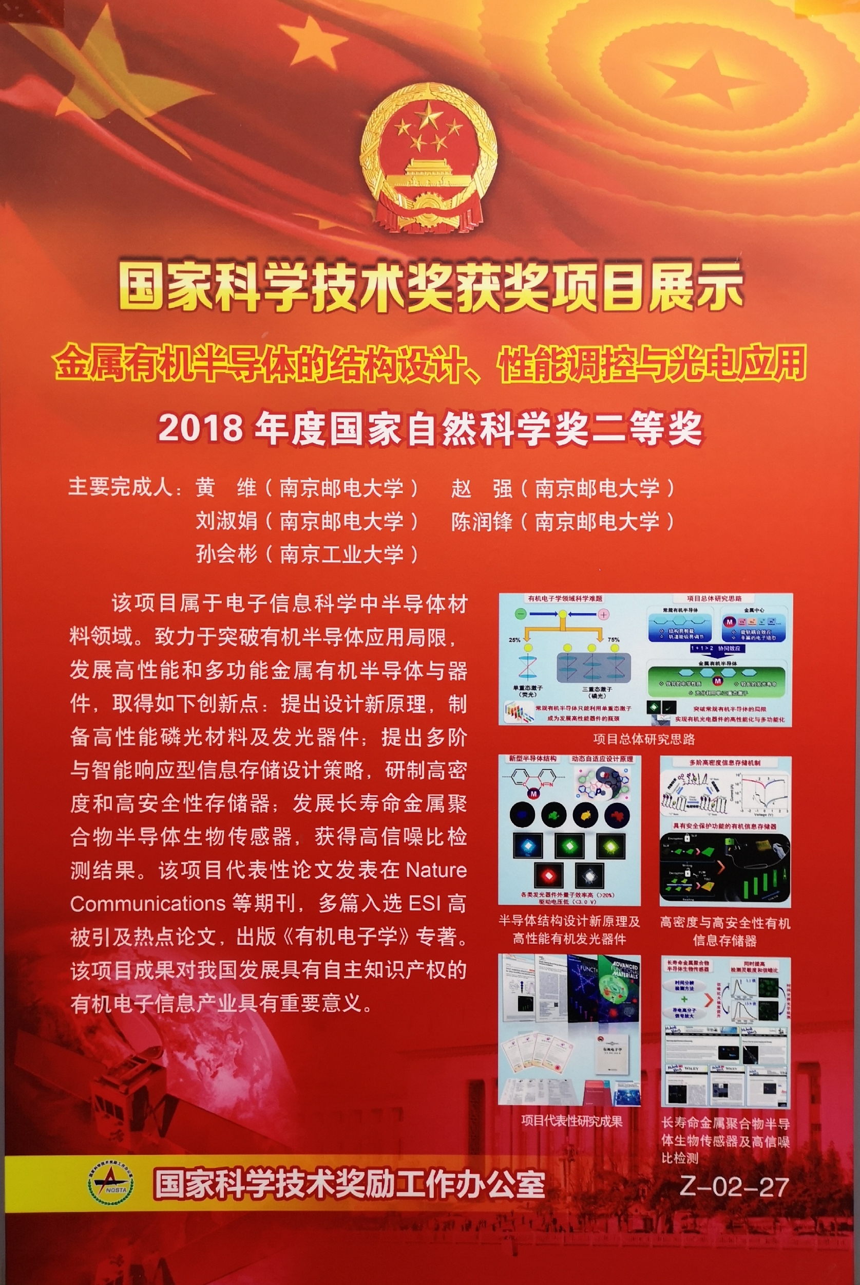 我校信息材料纳米技术研究院院长黄维院士率领的研究团队完成的“金属有机半导体的结构设计、性能调控与光电应用”项目荣获2018年度国家自然科学奖二等奖。获奖项目完成人为:黄维、赵强、刘淑娟、陈润锋、孙会彬。这是黄维院士研究团队继2013年首次获得国家自然科学奖二等奖后,再次荣获这一重要奖项。