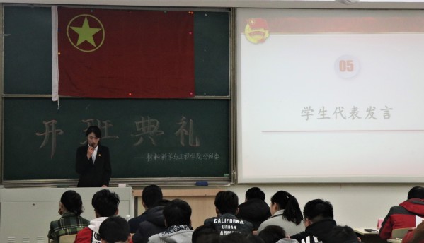 会议伊始,全体起立,奏唱国歌。于书记致辞,他对本期开班表示热烈地祝贺,简要介绍了菁英人才学校的情况,指出本次菁英人才班开班,是学院学习贯彻党的十九大精神,扎实推进“青年马克思主义者培养工程”的一项重要举措。广大学员们要以此次学习为契机,坚定信念跟党走,扎根社会实践,践行社会主义核心价值观。在党的十九大精神的鼓舞下,争做新时代的青年先锋。于书记对学员提出了三点要求:要坚定信仰,志存高远,在推动科学发展、促进社会和谐的伟大实践中实现自己的人生价值;要勤于学习,勇于实践,坚持走理论与实践相结合的道路,注重第二课堂的锻炼,积极参加社会实践,在实践中经风雨、长才干,炼就过硬本领;要学以致用,提升素质,处理好理想和现实的关系,处理好培训班学习与课堂学习的关系,脚踏实地,刻苦学习。
