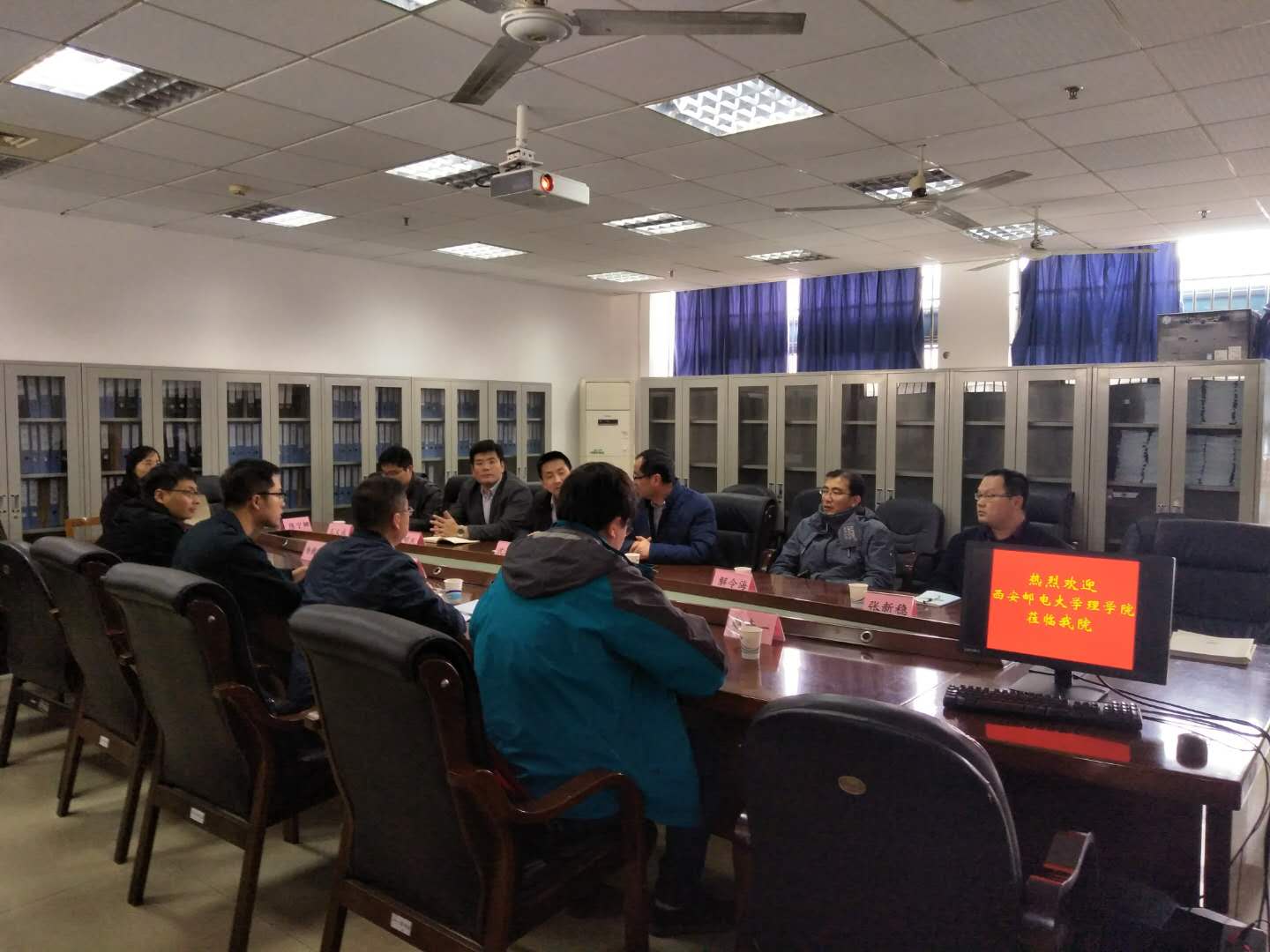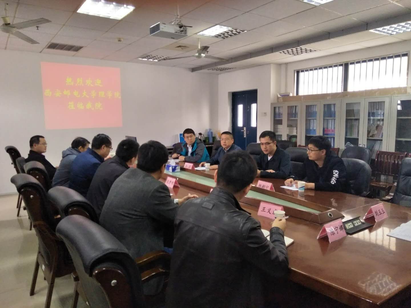 4月11日下午,西安邮电大学理学院任卫副研究员一行到我院就材料物理专业建设进行调研。参会人员有学校科研院重点平台建设办公室主任魏昂教授、材料学院副院长沈清明、副院长解令海、材料物理专业系主任仪明东和张新稳、实验教学中心主任王义成、教学秘书陈宁娜以及实验秘书刘玉玉,会议由副院长沈清明主持。