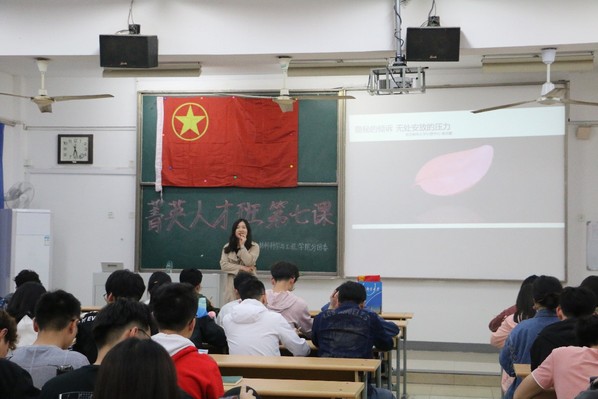 5月6日晚,91网站 第四十二期菁英人才培训班第七课暨“与压力做朋友”心理健康专题讲座在教3-204举行,主讲人为校心理中心的杨诗露老师。
