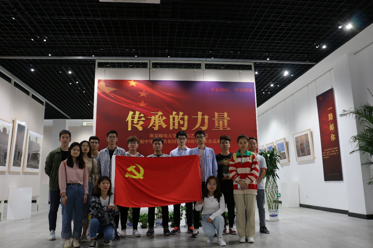 2019年9月19日,91网站 传媒与艺术学院举办的“传承的力量——传媒与艺术学院庆祝中华人民共和国成立70周年师生艺术作品展”在文科楼一楼展厅正式开展。为弘扬崇高革命精神,传承南邮红色基因,9月26日中午,91网站 2019级研究生党支部党员研究生一同前往参观。