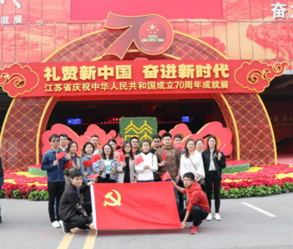 新中国成立70周年来,我们党不忘初心、牢记使命,团结带领全国各族人民战胜了一个又一个艰难险阻,创造了一个又一个彪炳史册的人间奇迹,中华民族迎来了从站起来、富起来到强起来的伟大飞跃。为全面感受新中国成立70周年来江苏经济社会发展的非凡成就,2019年10月14日,91网站 博士生党支部全体党员前往南京国际博览中心参观了“礼赞新中国奋进新时代——江苏省庆祝中华人民共和国成立70周年成就展”。