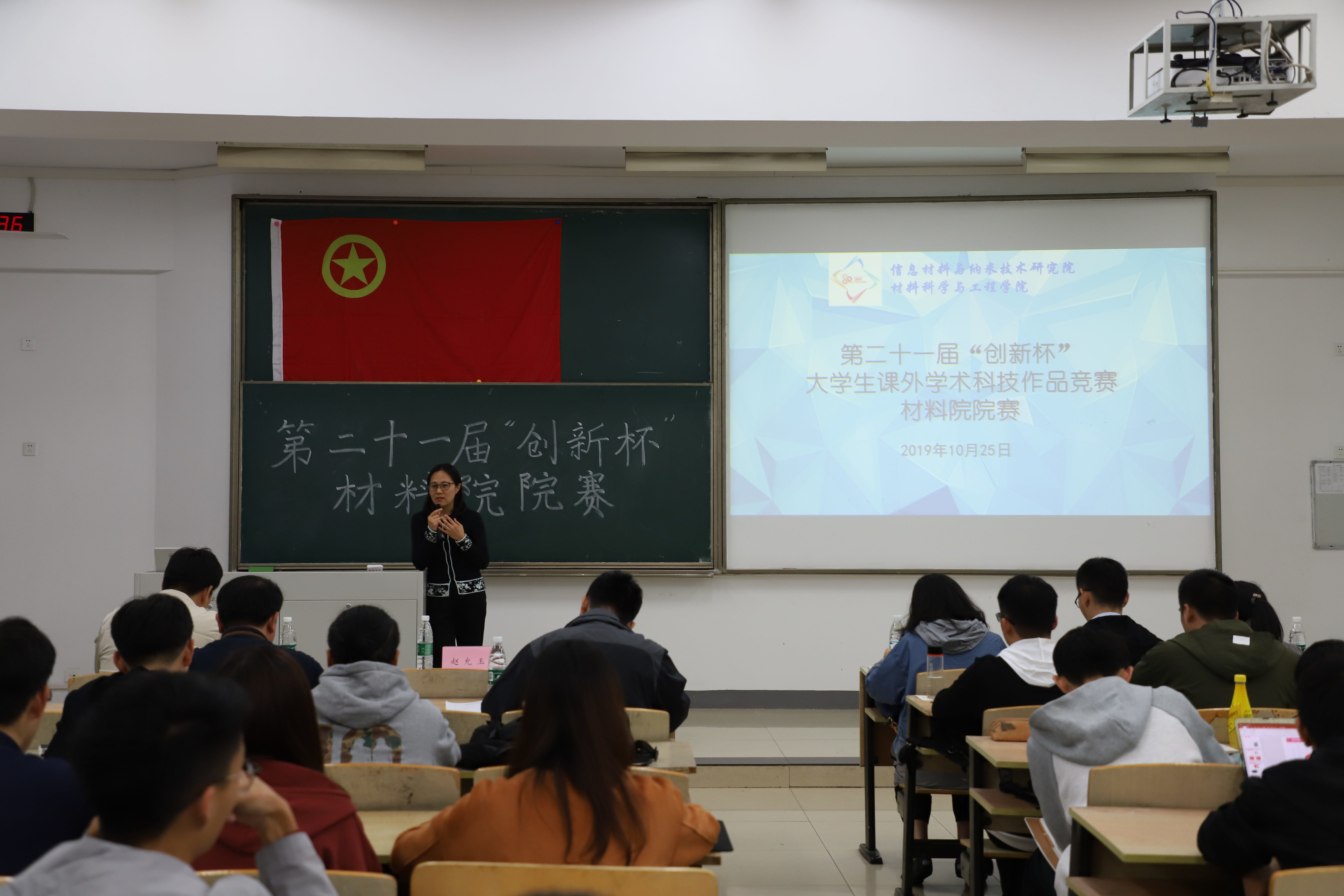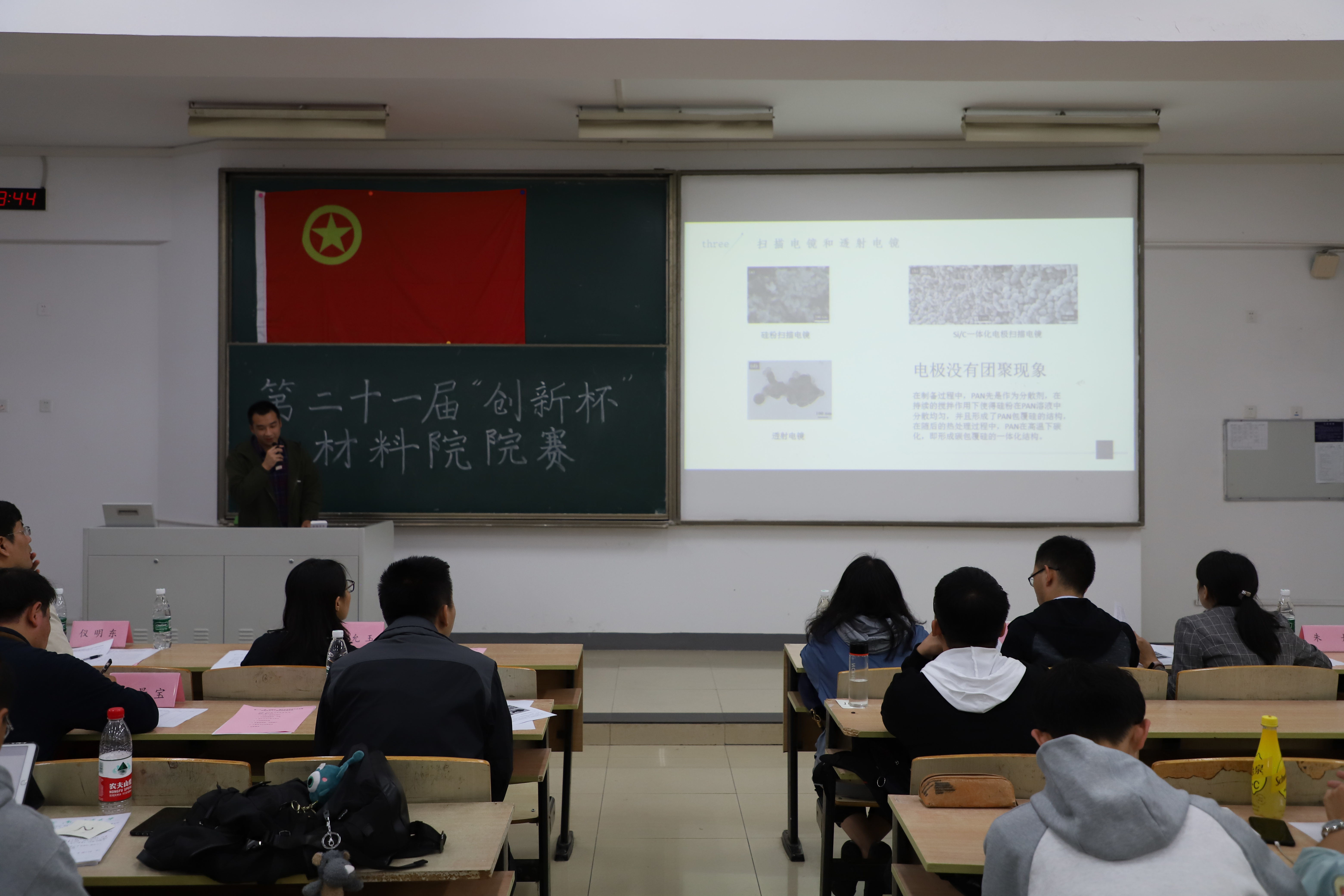 为了进一步营造优良的学习氛围,促进我院学生课外学科竞赛活动的蓬勃开展,增强大学生课外实践动手能力,发现和培养一批在创业创新方面有作为、有潜力的优秀人才,同时挖掘、选拔出优秀作品参加学校“创新杯”大学生课外学术作品竞赛,91网站 第二十一届“创新杯”大学生课外学术科技作品竞赛于10月25日在教二213举行。院党委书记赵允玉、副院长沈清明、副书记兼副院长于景宝、材料物理系系主任仪明东、高分子材料与工程系陈莹老师、材料化学系陶冶老师、朱丹老师担任本次比赛的评委。