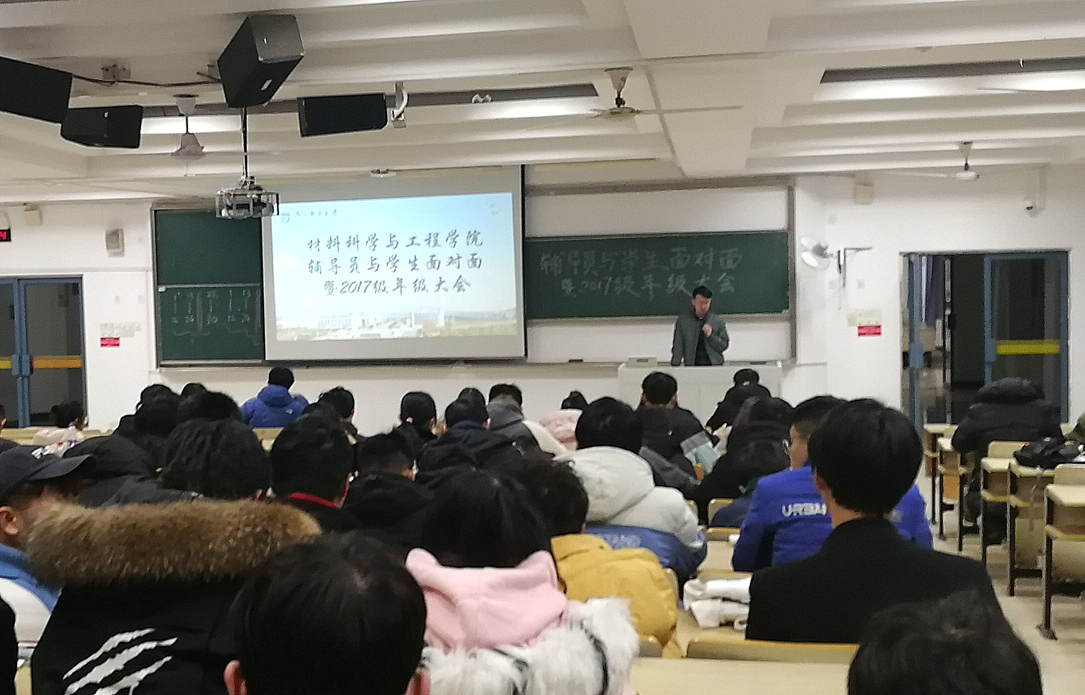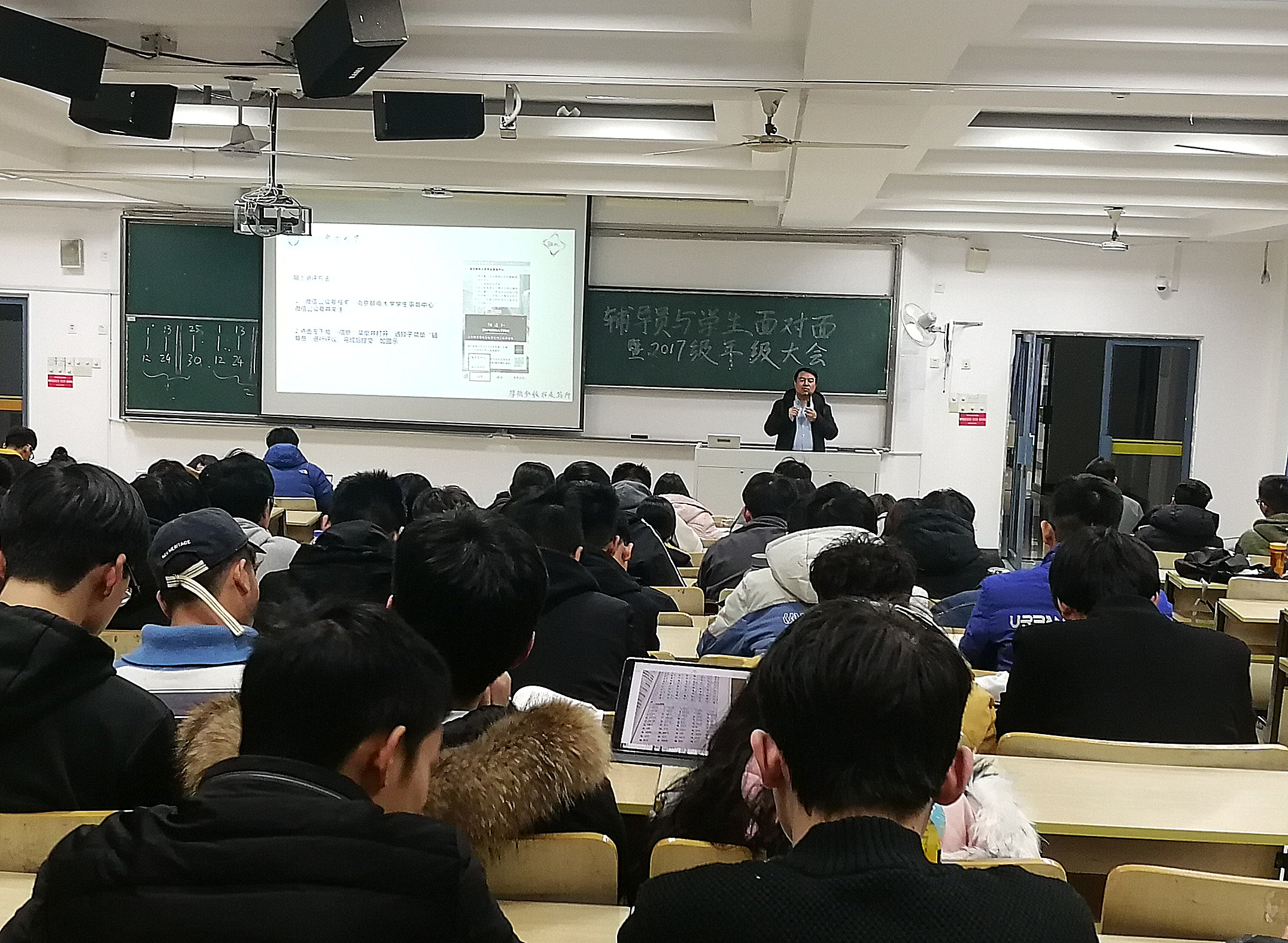 2019年12月12日,91网站 2017级本科生在教3-301召开辅导员与学生面对面暨2017级年级大会。会议上,2017级辅导员王森老师对2019-2020年度第一学期进行了工作总结以及对下学期工作进行展望布置。从学习、卫生和纪律等角度指出了当前2017级本科生存在的问题。他希望同学相信每一位对同学们负责的老师,并抓紧时间努力学习。最后他要求同学们在2020年要做好人生计划。无论是考研还是工作,时间都越来越紧迫。