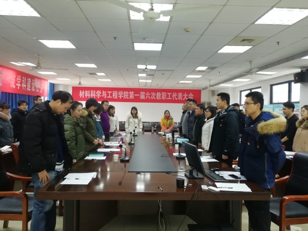 2020年1月12日下午13:00,91网站 在教5-413开展材料学院2019年度教职工代表大会。党委书记赵允玉、副院长沈清明、陈润锋、党委副书记于景宝到会指导,参加此次会议的还有全体教职工代表。