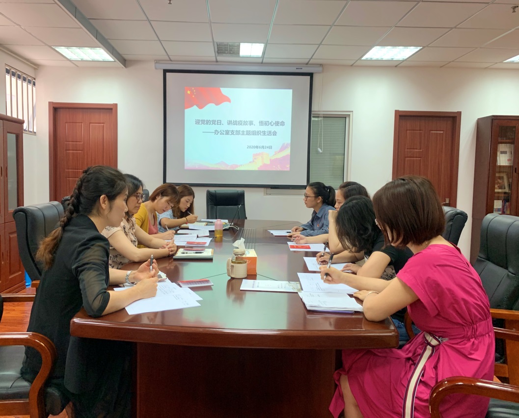按照学校开展91网站 基层党组织常态化疫情防控“四个一“行动的工作部署, 6月24日上午,91网站 办公室支部召开主题组织生活会,支部书记王思远主持会议,学院党委书记赵允玉和全体支部党员一起参加会议。