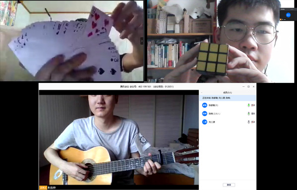 除了课堂辅导,我们的课间活动同样受欢迎。团队成员中有吉他协会的会长,因此课间我们时常能听到他悦耳的歌声。另一位擅长表演纯手法魔术的成员偶尔也会给我们露两手,有时候甚至会向我们传授他的“秘籍”。而我则会在课余时间教小朋友们玩魔方。对于这些放假在家而又缺乏父母陪伴的孩子而言,有趣的课外活动成了他们这五天里重要的快乐源泉。