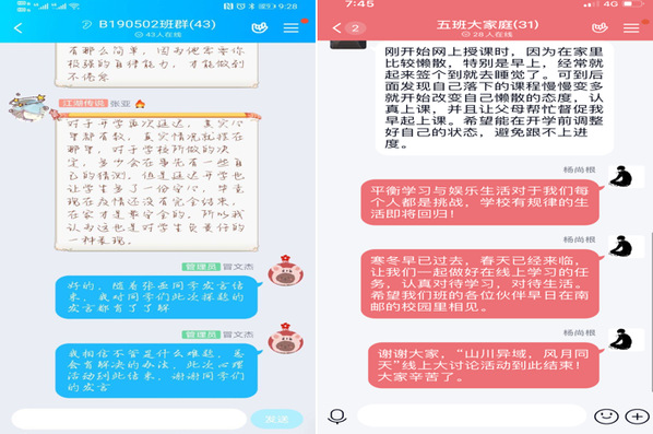 正值抗疫时分,2020年4月7-8日91网站 2018级、2019级学生于线上(qq平台)举行了“山川异域 风月同天”主题心理交流会。本次活动,通过线上同学的积极发言,引导了学生关注心理健康, 缓解了同学的焦虑及疫情产生的心理问题,营造了勤奋努力的学习氛围和积极向上的生活态度,加强了班级凝聚力,增进了班级同学间的友情,以便在今后的学习和生活中相互帮助,相伴同行。