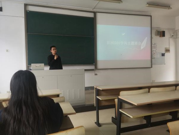 班会开始,首先由班长王子彤同学为大家汇报了开学以来的工作情况和班级情况,呼吁大家积极配合班委工作,完成班级相关事务,并且动员所有人积极学习,完成学业的同时努力考研,为自己的未来规划蓝图。随后B180501班的团支书黄威同学汇报了团支部的工作情况,鼓励大家参与团支部活动,做一个优秀共青团团员,积极向党组织靠拢。最后由91网站 2018级辅导员陈骏向我们介绍了学院历年的毕业去向,沟通并了解了大家目前的想法与方向,鼓励班上同学尽早规划自己的职业生涯。