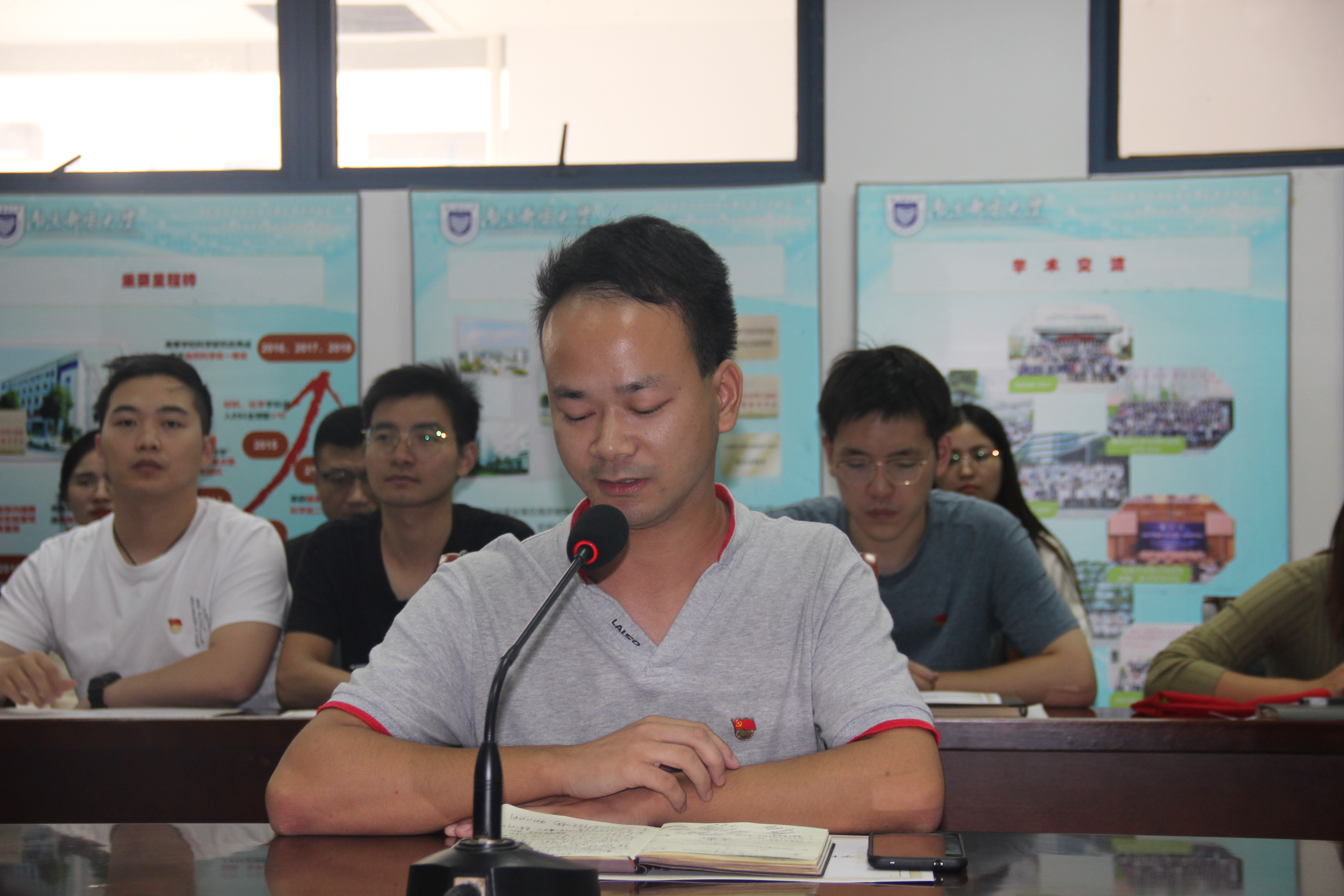 朱丹同志作为教师优秀党员代表发言,她在发言中表示,感谢学院党委、同事们给予的支持与帮助,在未来工作中,将会继续以党员标准严格要求自己,发挥党员先锋模范作用,做好教书育人工作。2019级研究生方栋同志作为大学生党员代表发言,他表示自己作为湖北籍青年学生,切身感受在疫情防控、自然灾害等各种困难面前,中国特色社会主义制度的优越性,以习近平同志为核心的党中央坚强领导下,中国人民越过了疫情防控最险最难的那段峭壁悬崖。作为学生党员,要认真学习增强本领,为国家建设贡献自己的力量。