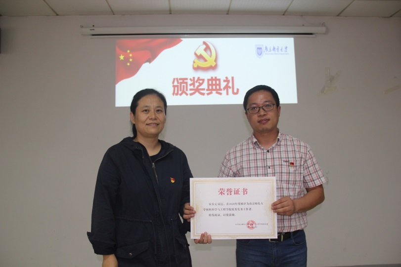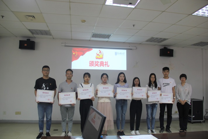 表彰会在国歌声中开始。张建平副书记宣读了表彰名单,王思远等8位同志被评为优秀教师共产党员、王炯等15位同志被评为优秀大学生党员、宋春元同志为被评为优秀党务工作者、实验中心党支部被评为先进党支部。