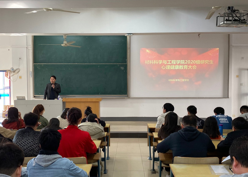 为扎实开展学院心理健康教育工作,关爱学生心理健康,准确把握学生心理状况,促进学生心理健康发展,学院联合校心理健康教育与咨询中心于11月11日在教4-300顺利举办材料院2020级研究生心理健康教育大会,大会由2020级研究生辅导员赵赫男老师主持,校心理教育中心助管同学协助,材料院2020级全体研究生新生共同参会。