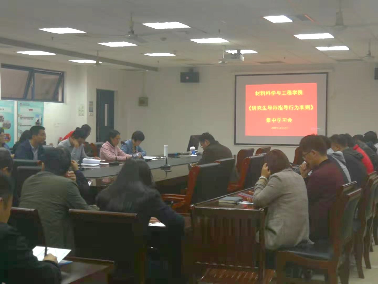 日前,教育部印发《研究生导师指导行为准则》(以下简称《准则》),进一步规范高校教师履职履责行为。11月17日中午,材料院结合学校研究生教育高质量发展研讨月活动,组织全体导师集体学习行为准则。院党委书记赵允玉、院长范曲立、副院长陈润锋、沈清明、陈淑芬、仪明东,出席会议。学习会由分管研究生教学工作的副院长陈淑芬主持。