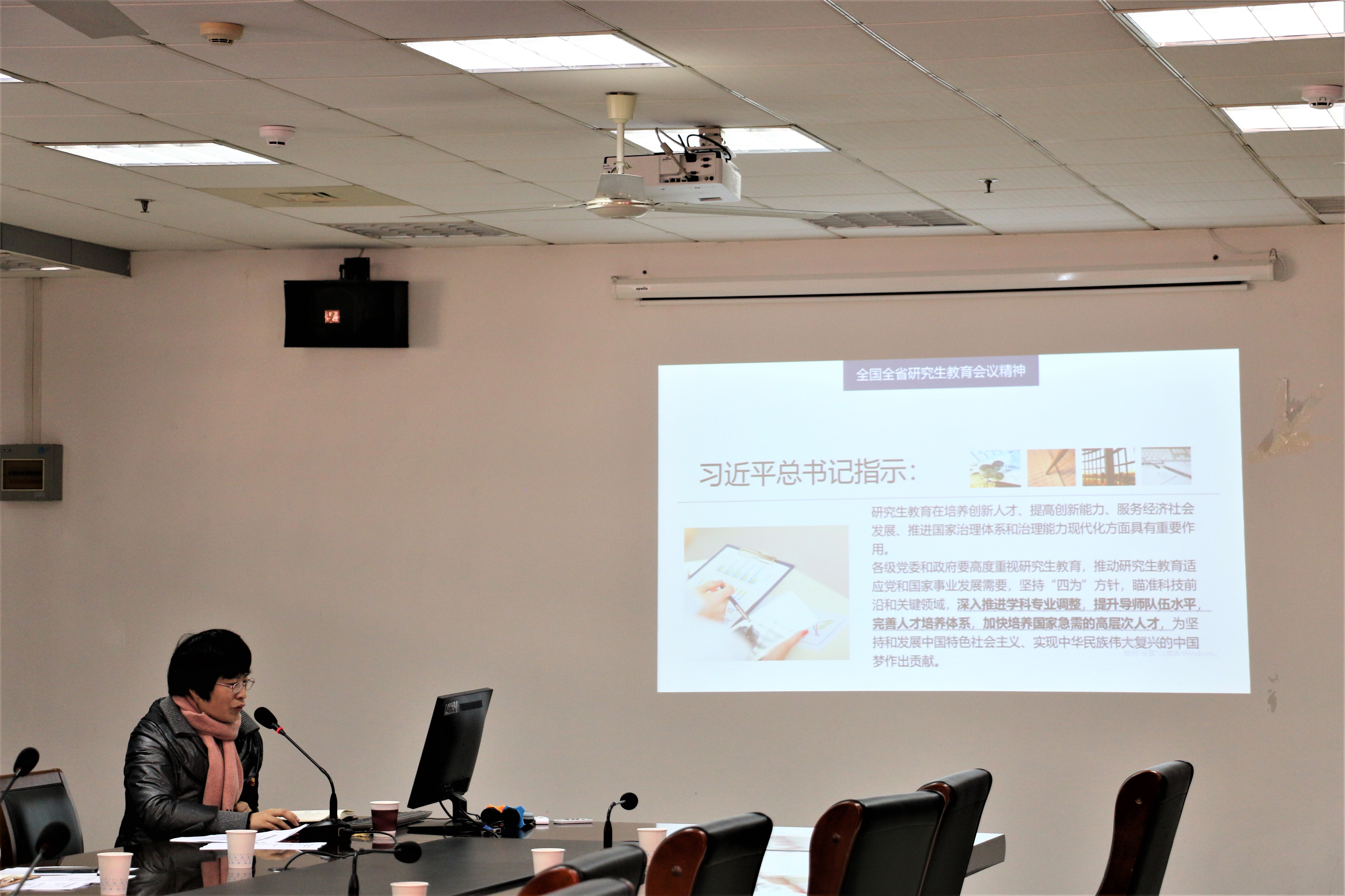 研讨活动由陈淑芬副院长主持。陈院长带领全体导师一起学习了习近平总书记关于研究生教育的重要指示精神,结合学院实际情况,从学科评估、学位点申报、研究生培养、研究生招生、导师队伍建设等方面总结学院研究生教育所取得的成绩,并对照学科评估、学校要求分析了目前的存在和急需解决的问题。