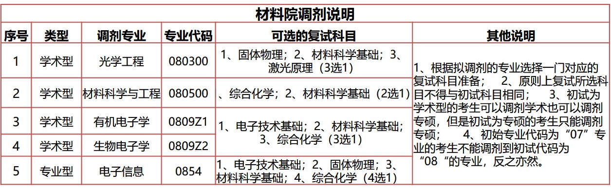 我院光学工程、材料科学与工程、有机电子、生物电子和电子信息专业接收部分调剂生,欢迎材料、化学等相关专业考生扫描下方调剂预报名表二维码填报个人信息。
