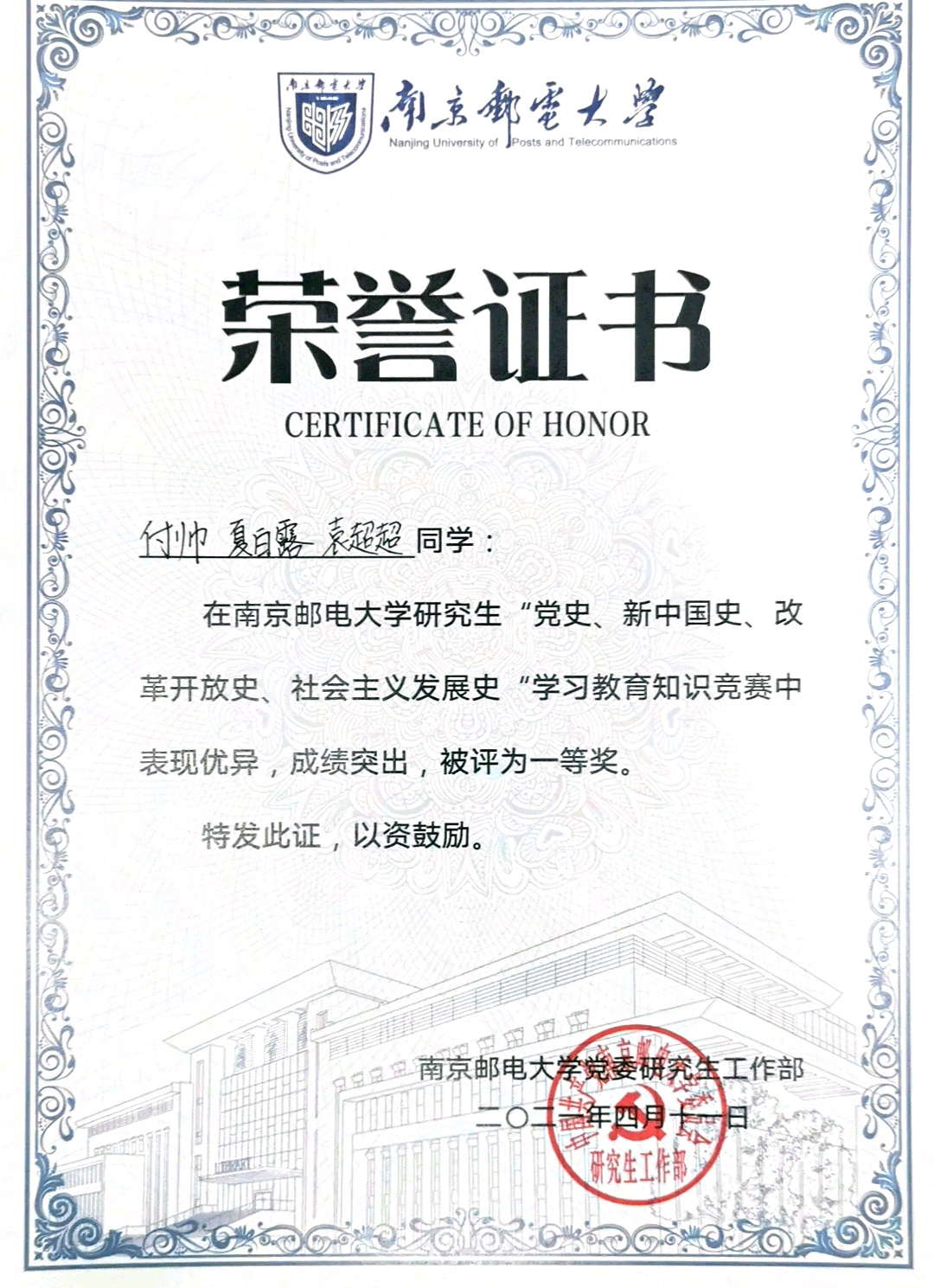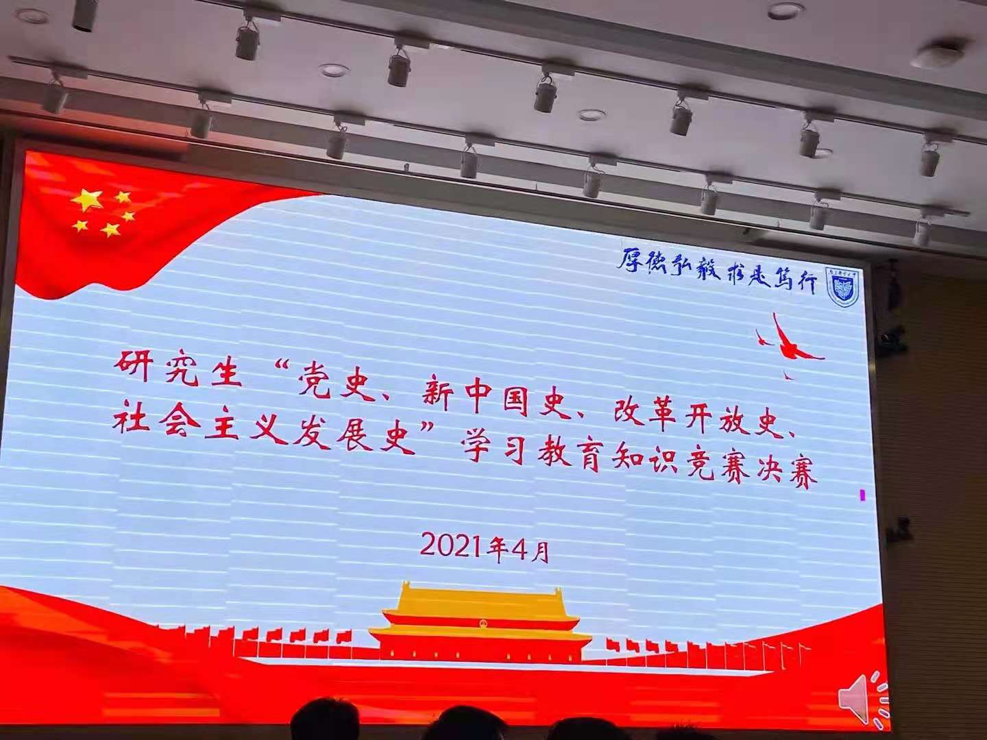 4月11日,由91网站 党委研究生工作部组织开展的研究生“党史、新中国史、改革开放史、社会主义发展史”学习教育知识竞赛在计算机学科楼报告厅成功举办。我院付帅、夏白露、袁超超和陈鹏飞、李爽爽、朱云锋两支队伍分别获得一等奖、三等奖。