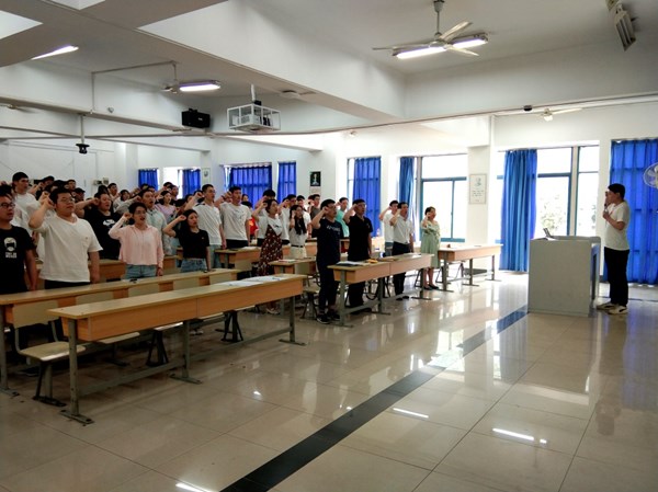 本科生党支部书记赵赫男带领全体党员重温入党誓词,通过重温誓词,强化党员的责任意识、担当意识,鼓励毕业生党员在新时代肩负起大学生党员的历史使命。