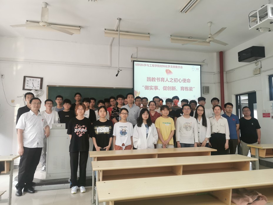 为深入贯彻党史学习教育,全面落实“把学习党史同总结经验、推动工作结合起来”的总体要求,切实将学习教育成果转化到服务群众的具体成效上来, 2021年6月2日,91网站 材料化学党支部在教4-105开展了主题为“践教书育人之初心使命—做实事、促创新、育栋梁”的“我为群众办实事”的实践活动,为材料化学专业2020级大一本科学生介绍大学生创新创业训练计划、挑战杯、互联网+等训练和竞赛的政策规定,分享了高年级实践创新开展情况和执行经验,解答同学们对于实践创新活动存在的疑问和困惑。