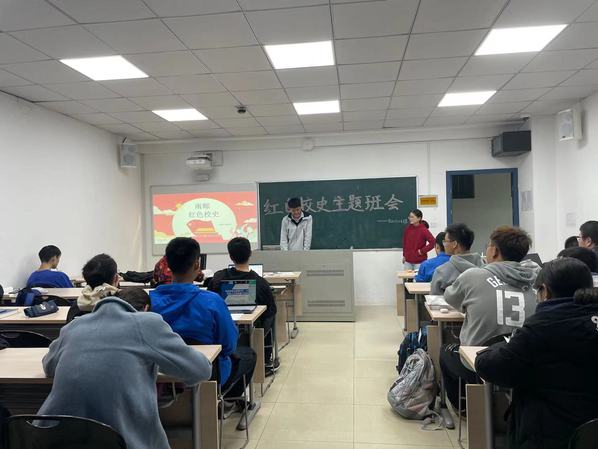 班会上,各班班长播放有关南邮历史知悉度的调查和南邮先辈对南邮红色校史深情讲述的视频,新生体会到了战邮之路的艰辛。在革命战士的讲述中学习了战邮精神,并激发了爱国爱校热情。