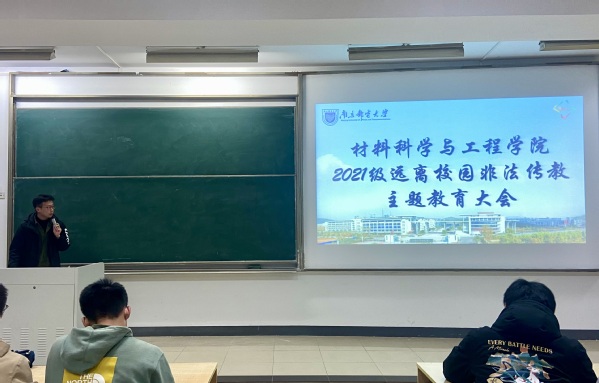2021年12月9日,91网站 2021级本科生在教3-300召开了以远离校园非法传教为主题的教育大会,此次大会由2021级辅导员王森主持。