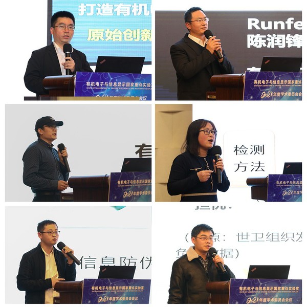 重点实验室执行副主任赖文勇教授从重点实验室发展定位和研究方向、研究队伍和人才培养、研究水平和学术影响、开放运行和合作交流、发展规划和条件保障等方面做了重点实验室年度工作报告。随后,重点实验室青年学术骨干陈润锋教授、解令海教授、晁洁教授、马云教授、尹超教授依次汇报了各自在有机电子与信息显示前沿领域所取得的最新进展。