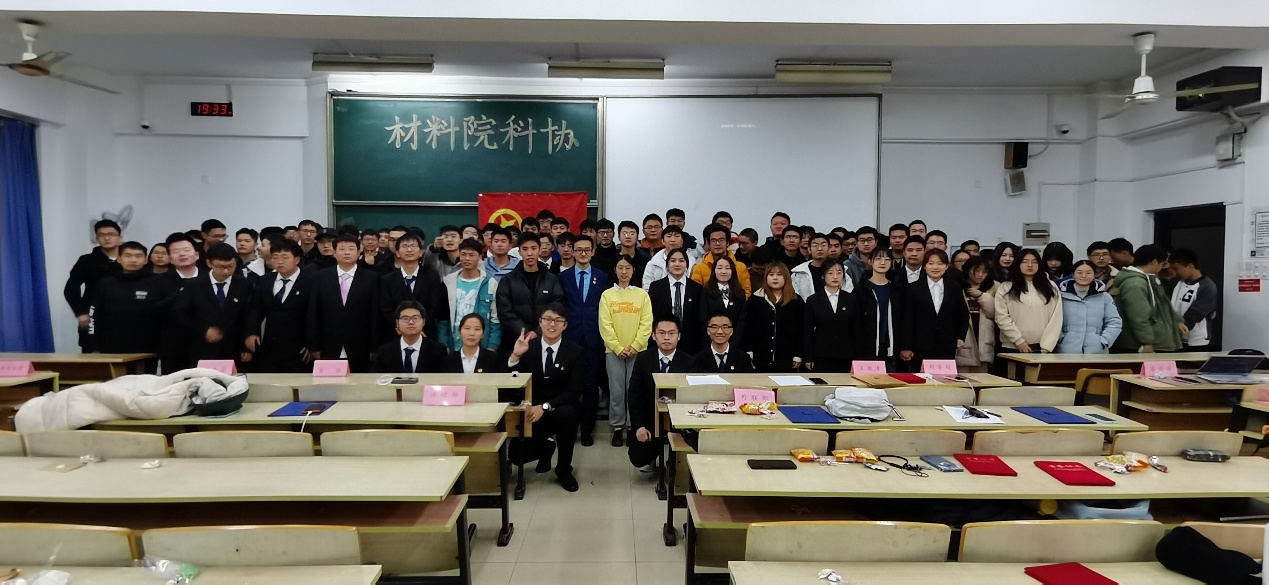 出席本次会议的有:材料院研究生会主席于海鹏,材料院学生会主席郭鹏浩,材智青协主席林嘉诚,材料院分团委秘书长朱佳,19级科协主席张宸宇,20级科协主席陈海燕以及本届科协全体成员。