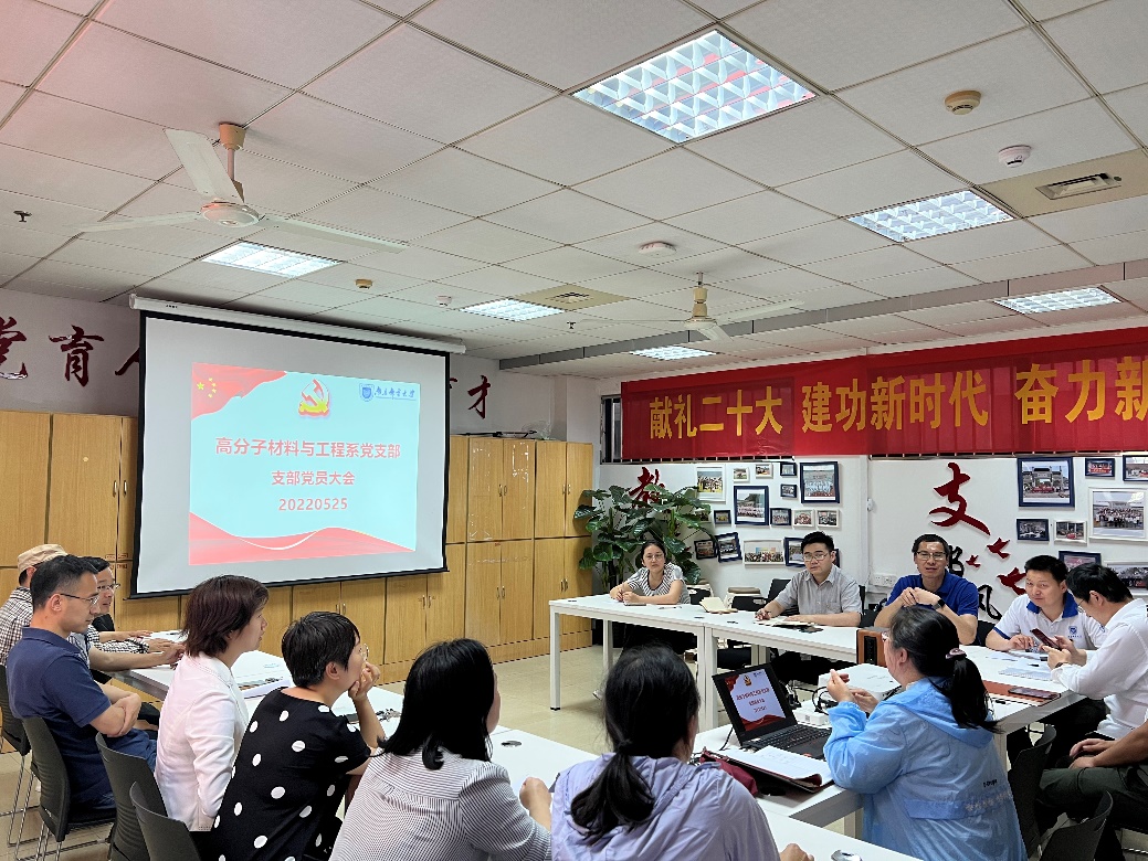 为进一步号召广大青年教师传承红色基因,赓续红色血脉,青春向党不负人民,肩负民族复兴重任,以实际行动迎接党的二十大胜利召开。91网站 高分子材料与工程系党支部于2022年5月25日在教5-101党员活动室组织全体党员召开“传承红色基因,扎根中国大地办大学,勇担民族复兴重任”为主题的支部党员大会。党支部全体青年教师认真学习了习近平总书记在中国人民大学考察时的讲话、习近平总书记在庆祝中国共产主义青年团成立100周年大会重要讲话、以及给南京大学留学归国青年学者的回信等重要精神,并收看了相关视频。