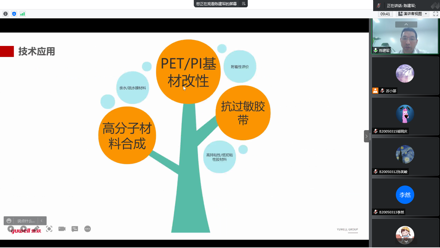 材料化学系主任苏邵教授主持,系副主任周馨慧和B200503班全体同学参加了本次线上报告。