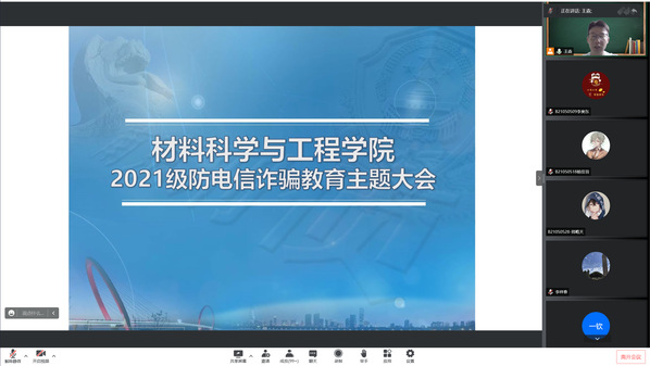 为提高学生的安全防范意识,增强自我保护能力,进一步维护自身的合法权益,2022年6月8日下午,在腾讯会议中开展了以“防电信网络诈骗”为主题的教育大会,本次大会由2021级辅导员王森主持,2021级全体学生参加大会。