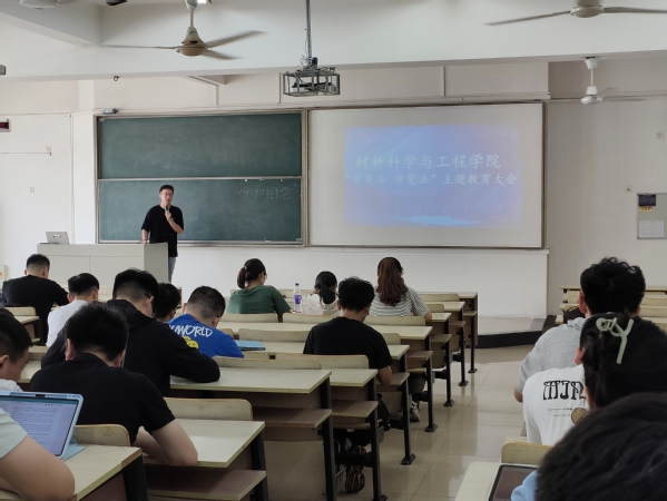 为了加强法制教育宣传,增强学生的自我保护意识,让学生养成学法、懂法、依法办事的好习惯,有效树立和维护学校的学风以及社会的稳定发展。2022年9月27日,91网站 2019级2021级召开了“学宪法、讲宪法”主题大会,会议由2019级2021级辅导员王森主持,2019级和2021级全体学生参会。