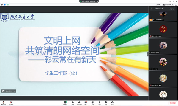 为了引导大学生文明上网,争做清朗网络空间的共建者、共享者,共同营造健康向上的校园网络环境,2022年9月26日,91网站 2021级召开了“文明上网,共筑清朗网络空间”主题大会,会议由2021级辅导员王森主持,全体2021级学生参加会议。