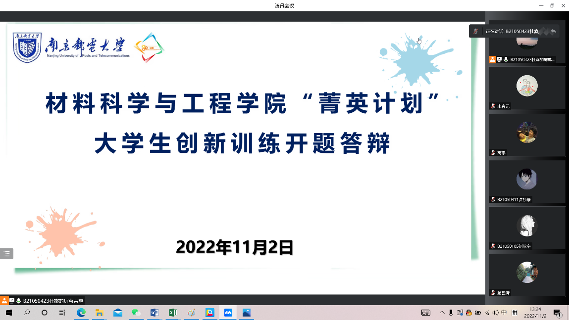“菁英计划”学员主持的33项创新项目按照信息材料、信息器件和生物信息传感等方向分成3个组别,通过腾讯会议开展答辩。答辩环节中,学员们依次对各自课题的课题背景、研究内容、研究方案、可行性分析及工作计划安排等进行汇报。评审专家们对课题的立意、创新性、研究内容和方法及开题报告撰写规范等给予了细致点评和精准指导,为各课题的顺利开展提出了宝贵意见和建议。在学院前期精心筹备、学员们积极参与和专家们细致点评下,本次“菁英计划” 开题答辩圆满完成。