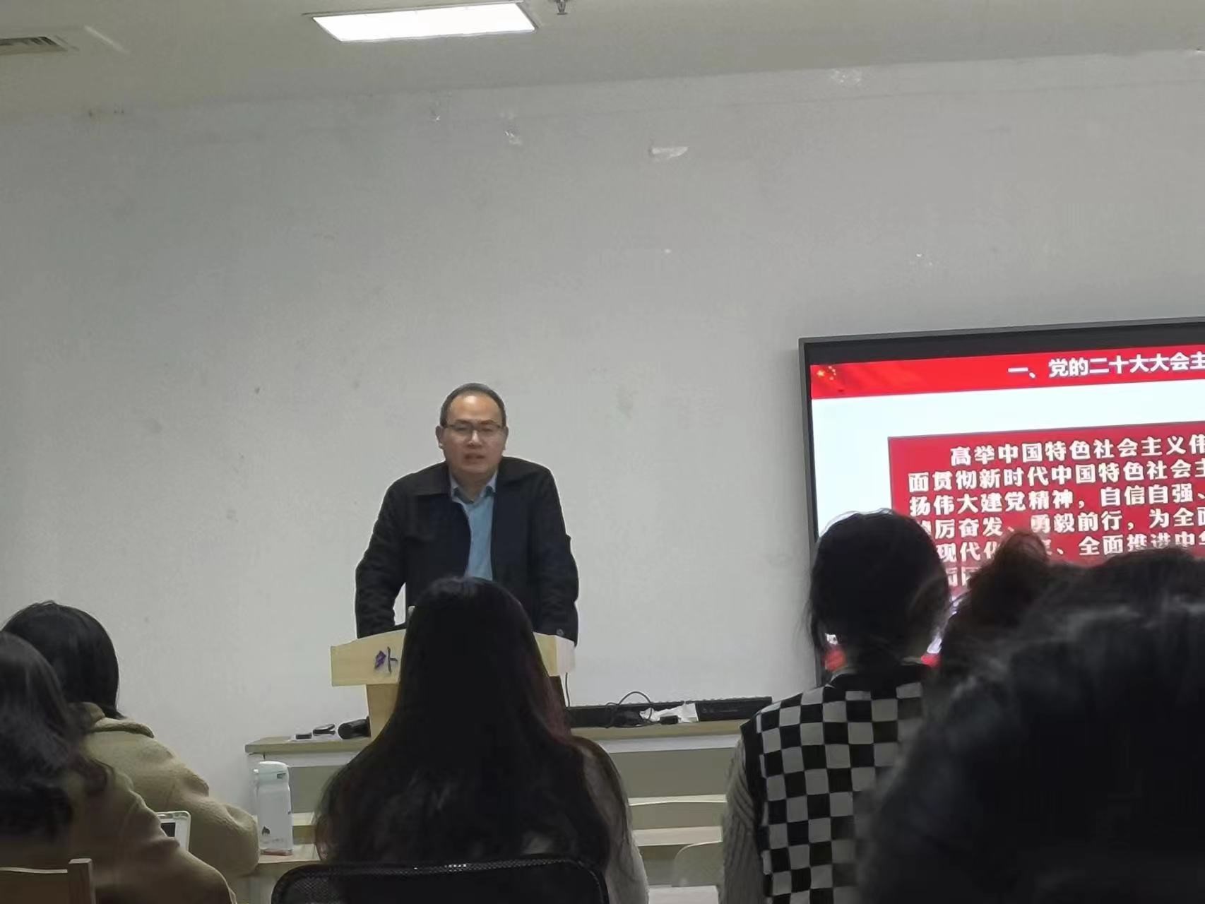 张老师以“以中国式现代化全面推进中华民族伟大复兴”为题,从党的二十大大会主题、内容框架等方面进行了重点解读,并就日常工作中如何将学习党的二十大精神入脑入心做了分享。张教授强调,用党的科学理论武装头脑,不忘我们党的初心使命,才能将个人发展融入民族复兴的伟大进程,书写无悔青春的时代答卷,最后,他结合自己的岗位职责分享心得体会,号召思政理论课教师和学工干部一起,努力做好青年朋友的知心人、青年工作的热心人、青年群众的引路人。