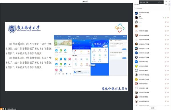2022年12月7日,91网站 2019级本科生在腾讯会议中召开2019级辅导员与学生面对面暨年级大会。会议上,2019级辅导员王森老师做本学期工作总结,从学习、卫生和纪律等角度指出了当前2019级本科生存在的问题,希望全体学生抓紧剩余的时间努力考研复习,争取取得好成绩。