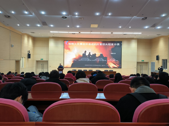会上,吴波参谋结合近十年南京高校实验室火灾典型案例,展示了大量事故案例的图片、文字记录,并就火灾的定义、发生的主要原因、种类以及防范措施、应急处置措施等进行了详尽讲解,让师生深刻意识到火灾对生命安全、设施财物的危害以及其严重性,增强了广大新生的消防安全意识,引起了广大新生对消防安全隐患的重视,提高了广大新生应对突发火情的处突能力。