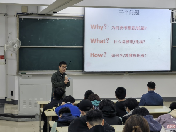 2023年3月22日,91网站 邀请外国语学院殷健老师在教4-101给学生带来了一场别开生面的雅思托福讲座,2021级和2020级本科生积极参加了讲座。