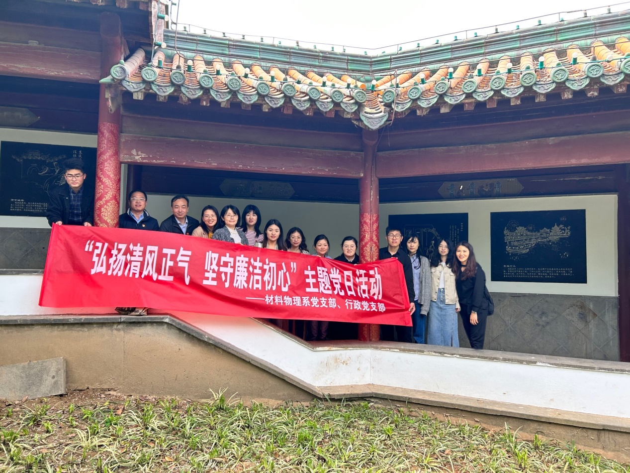 为深入开展学习贯彻习近平新时代中国特色社会主义思想主题教育活动,全面学习贯彻党的二十大精神,加强反腐倡廉教育和廉洁文化建设, 4月21日上午,我院材料物理党支部、行政党支部联合开展“弘扬清风正气、坚守廉洁初心”主题党日活动,组织支部党员前往阅江楼参观百米长廊连环画及明史金陵碑廊。联系材料物理党支部的党委委员、学院党委副书记吕蔷蔷参与此次活动。
