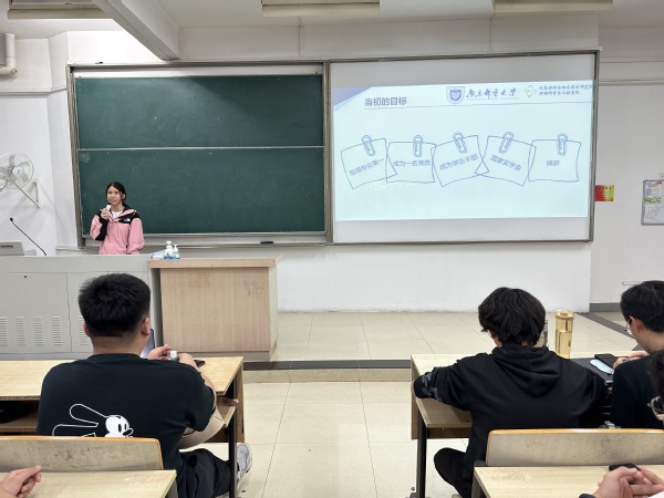 刘显慧同学围绕”以苦难做阶梯,做新时代最美奋斗青年”,从社团工作、艺术精品演出、志愿服务、学习经验等方面分享个人经历,尤其强调踏实、认真等品质的重要性。郭子涵同学以“青春故事分享”为主题,从课程学习、科研竞赛、学习经历、保研介绍四个方面为同学们做详细完整的分享,以”自由且自律,无用但有为”激励同学们合理规划大学四年的时光,交出一份满意的人生答卷。