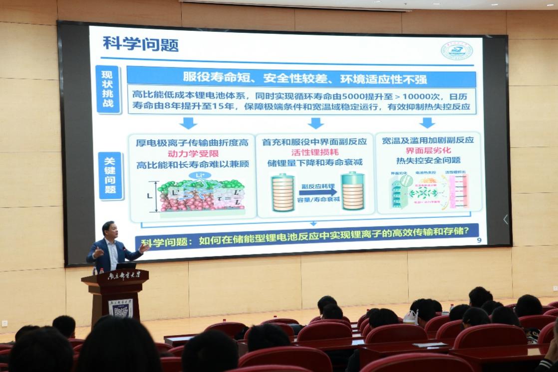 2023年10月26日上午,91网站 在图书馆四楼报告厅成功举办了第四期主旨为“新时代、新青年、新材料、新能源、新前沿”的“五新”讲坛。此次讲坛的主讲嘉宾为华中科技大学电气与电子工程学院谢佳教授,讲坛的主题为规模化锂离子电池储能关键技术。新能源材料与器件专业的全体学生和部分专业骨干老师及研究生参加了本次讲坛,本次讲坛由新能源材料与器件系主任黄镇东教授主持。