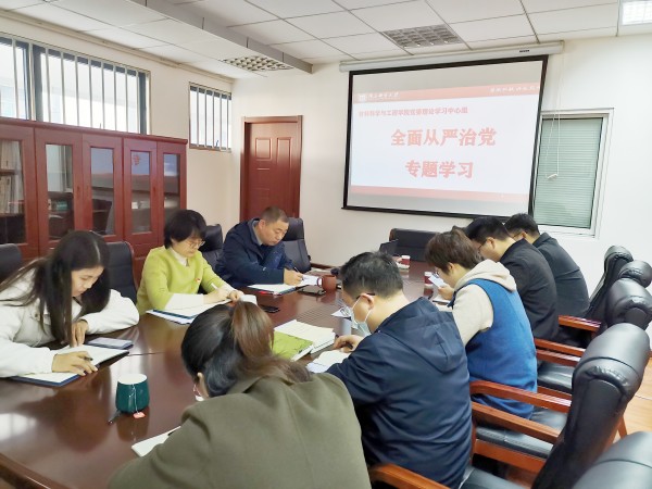 学院党委副书记吕蔷蔷做重点发言,党的十八大以来,我们党以前所未有的勇气和定力全面从严治党,打了一套自我革命的“组合拳”,形成了一整套党自我净化、自我完善、自我革新、自我提高的制度规范体系。作为学院党委的纪检委员,在理论学习、实践锻造、工作方法上要做到如下几点:坚持刚柔并济,推动思想建党与制度治党相结合;坚持敢于斗争,推动问题导向与责任担当相结合;坚持守正创新,推动继承传统与改革突破相结合。