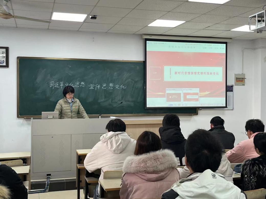 2023年12月1日上午,91网站 2023研究生党支部在教2-118开展“深入学习贯彻党的二十大精神”专题党课,内容为传达全国宣传思想文化工作会议精神,学习习近平文化思想。91网站 党委副书记吕蔷蔷老师主讲,支部党员参加党课学习。