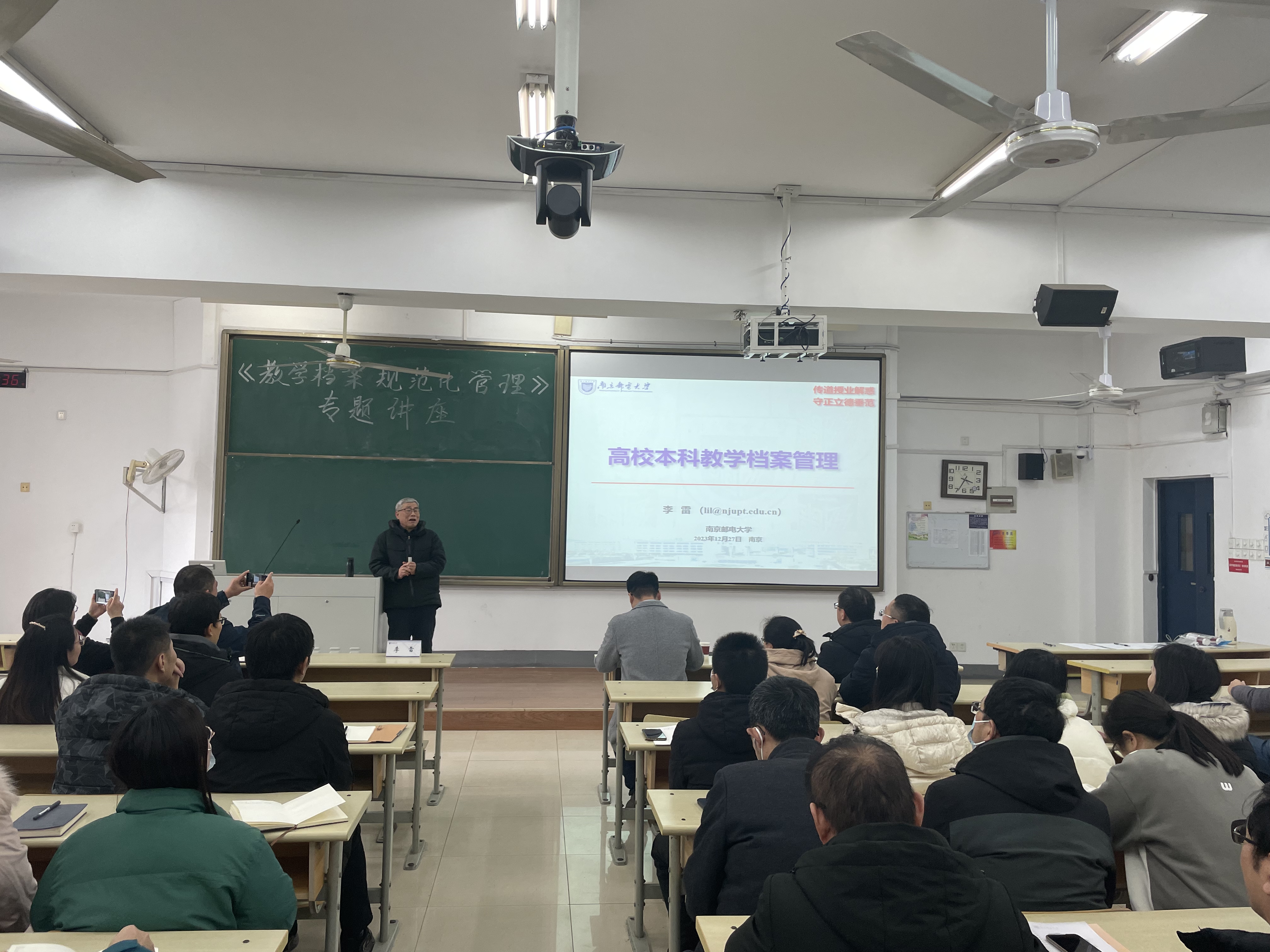 李雷教授的专题讲座以“传道授业解惑,守正立德垂范”出发,强调立德垂范是高校教师职业素养的优良传统和时代主题。其后,从教学档案检查的基本要求和三类教学档案的检查方法两个方面进行了分享。李雷教授从教学档案的定义、教学档案检查的基本要素,考试考查教学档案、实习实验教学档案及毕业设计(论文)档案的管理规范及检查重点进行了详细的阐述。